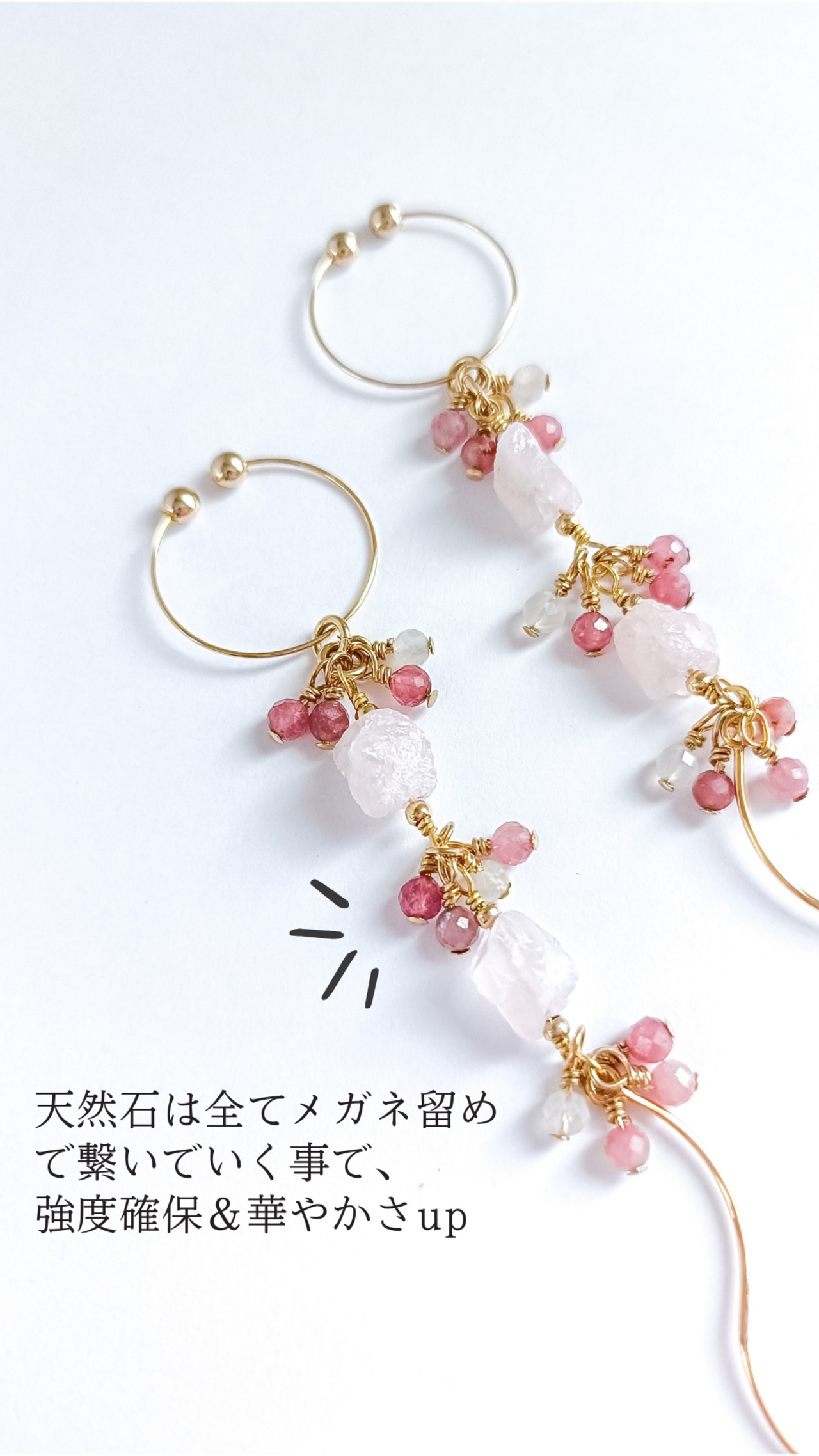 金具の玉の間隔を、広げたり狭めたり、微調整ができる形状記憶タイプなので、着ける方の耳の厚みに合わせて頂く事ができます。