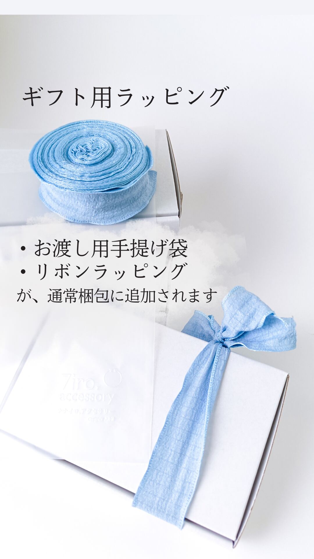 ・通常梱包(取扱説明書、thank youカード、shopカードも同梱)に加えて、お渡し用の手提げ袋の同梱と、リボンラッピングで発送いたします。