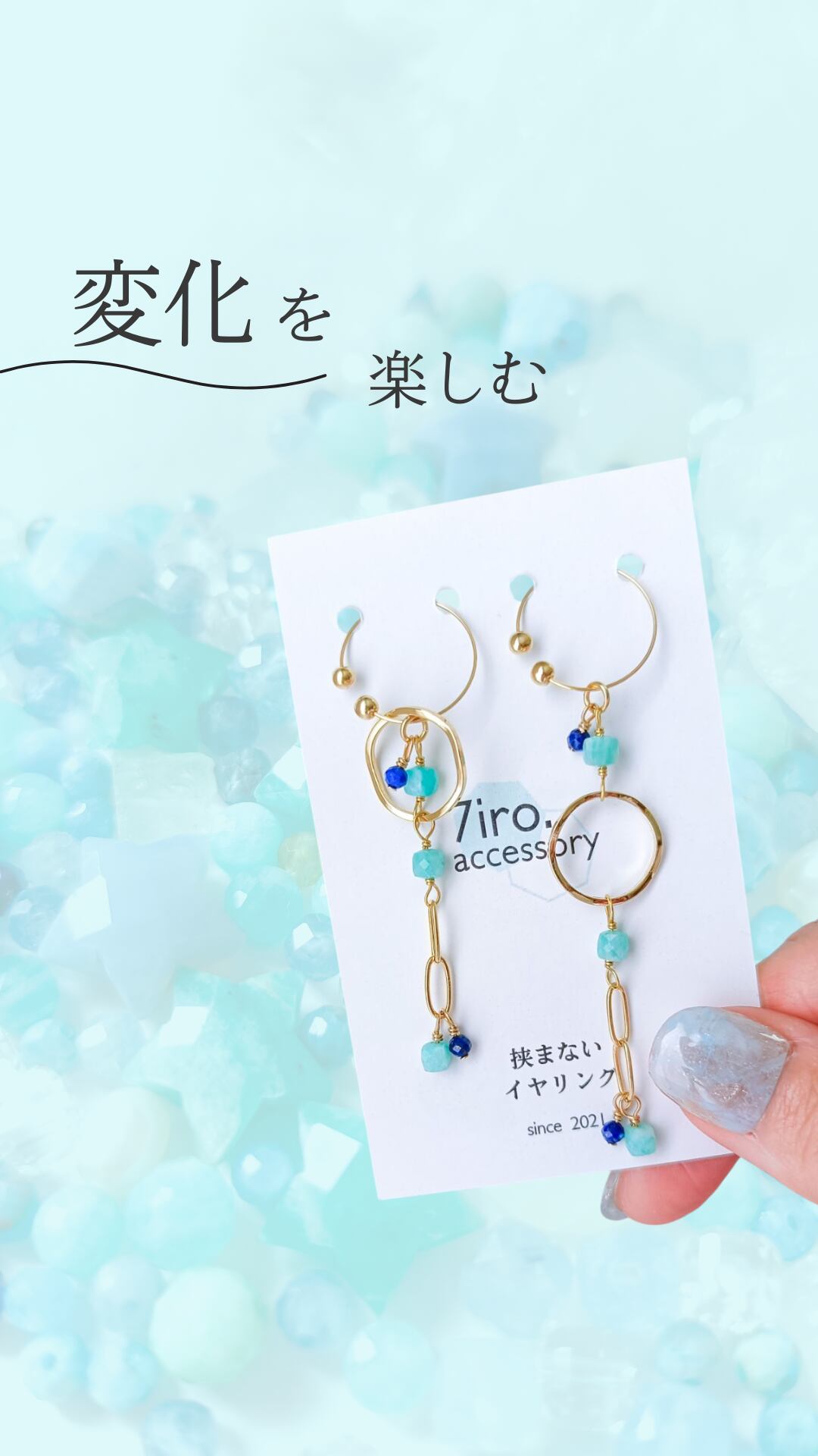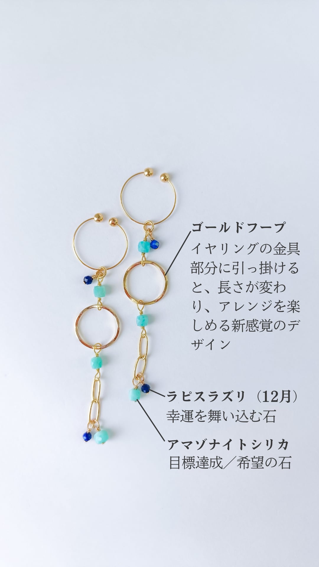 038│2way◆フープでアレンジ♪変化を楽しむアマゾナイトシリカのイヤリング