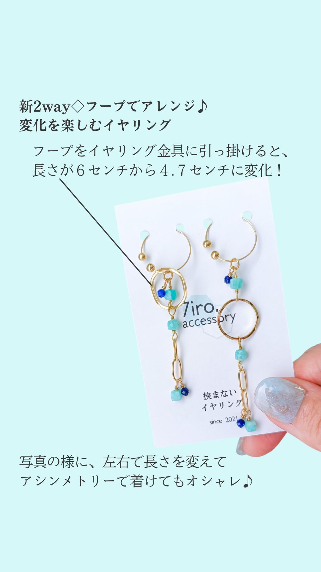 フープの部分を金具に引っ掛けることで、一瞬で長さが変わる♪新感覚のイヤリング☆