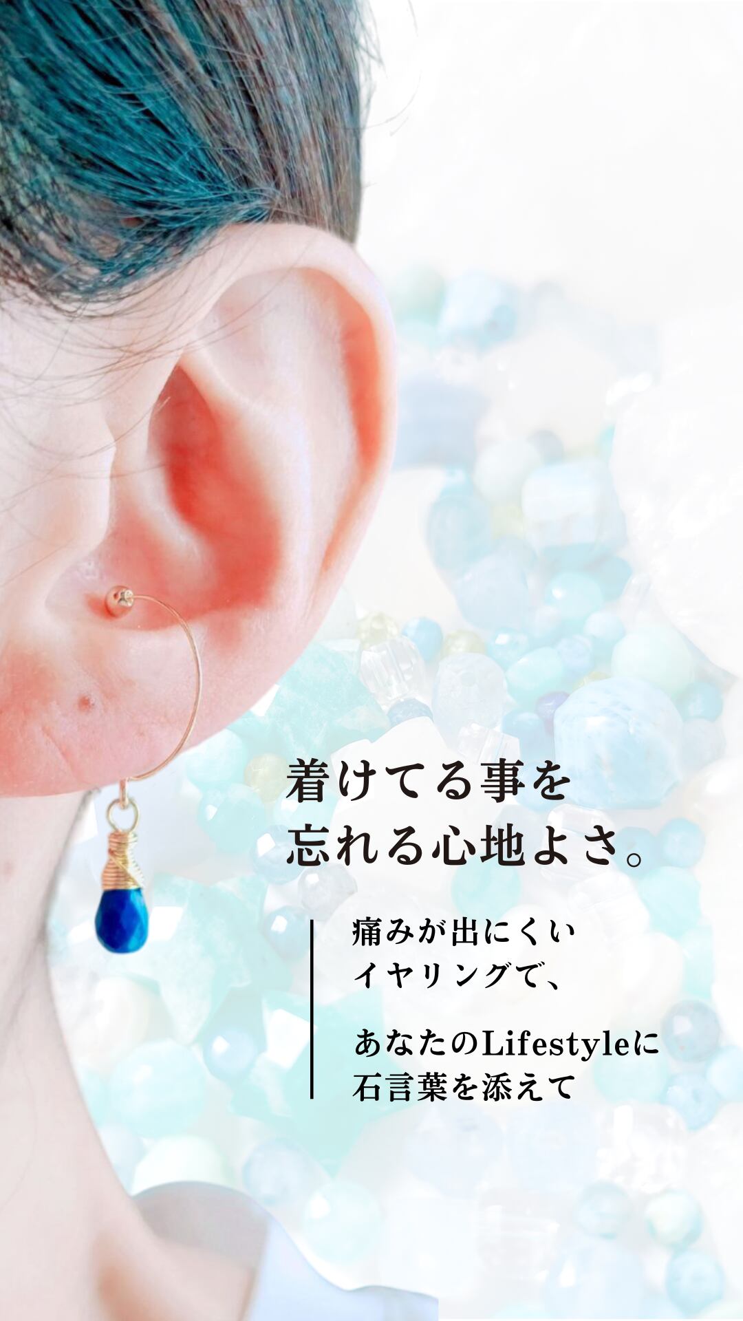 金具の玉の間隔を、広げたり狭めたり、微調整ができる形状記憶タイプなので、着ける方の耳の厚みに合わせて頂く事ができます。