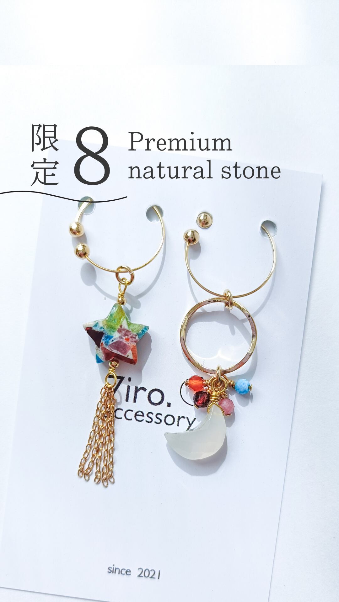 046│8点限定◆星型ブレンドストーンのアシンメトリーイヤリング
