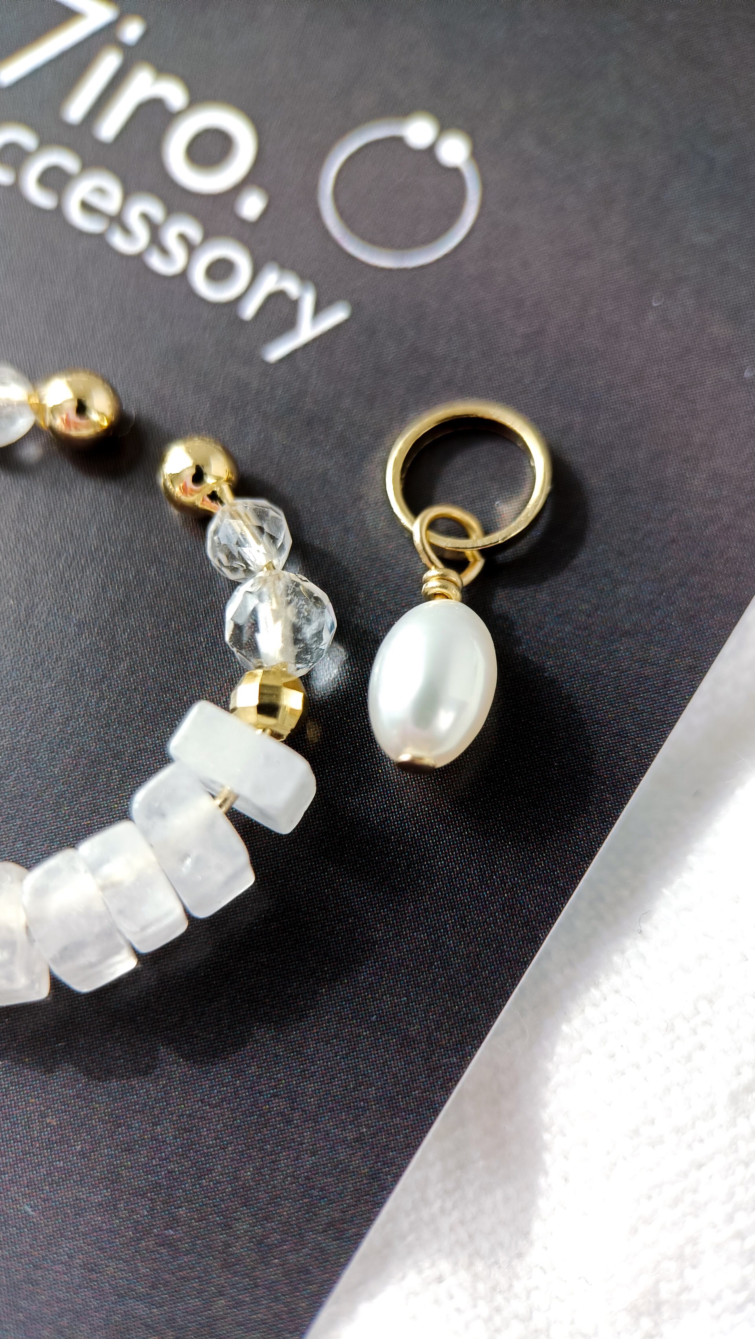 051│4way◆水晶と淡水パールのフープイヤリング◇外せる天然石チャーム付き