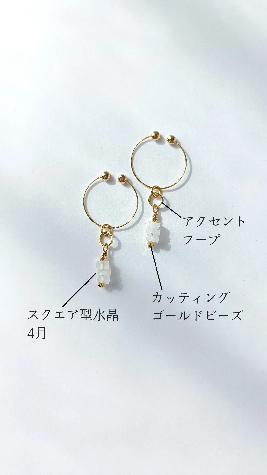 イヤーカフの様に、耳のくぼみに引っ掛けるタイプの金具を使用しております。