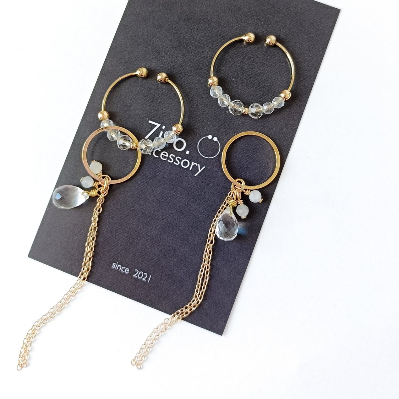水晶が気持ちをクリアにし、ムーンストーンが本来の感性を引き出すことで、迷いを手放し前向きな流れをもたらします。