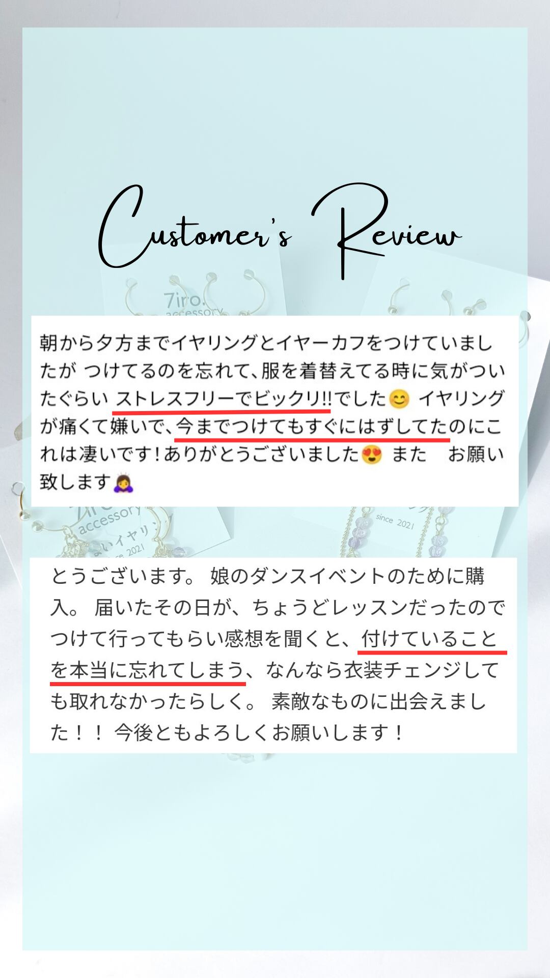 金具の玉の間隔を、広げたり狭めたり、微調整ができる形状記憶タイプなので、着ける方の耳の厚みに合わせて頂く事ができます。