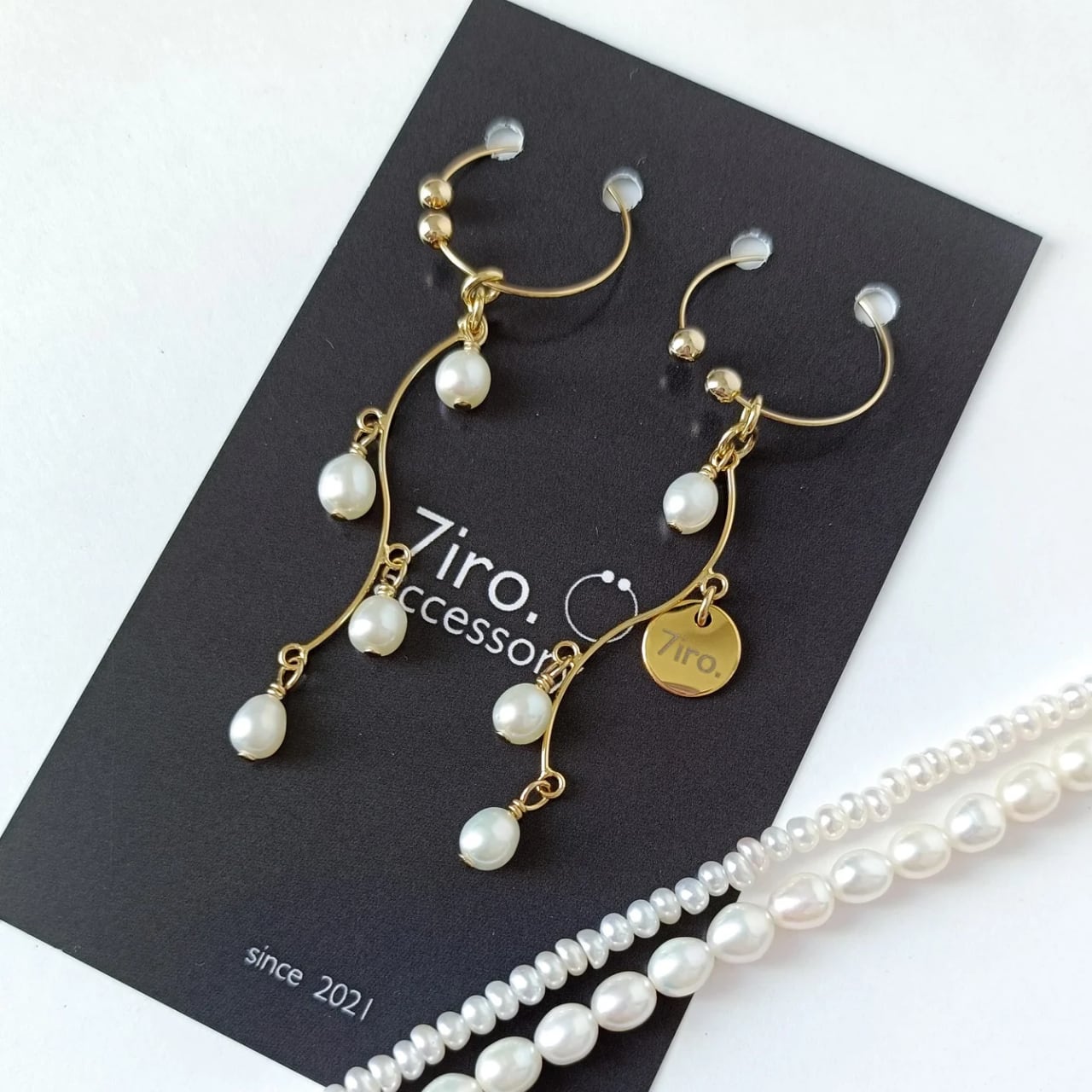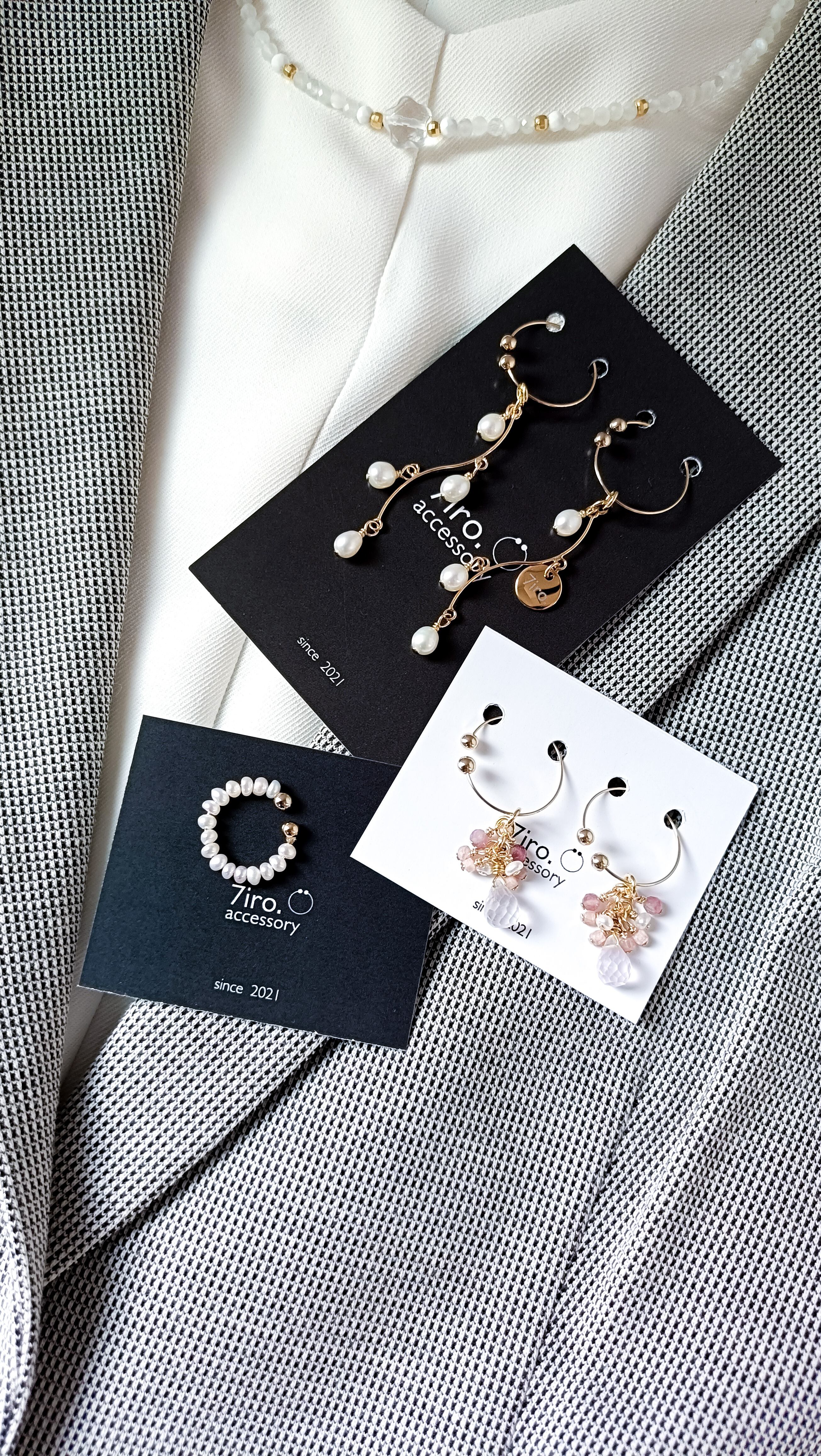 金具の玉の間隔を、広げたり狭めたり、微調整ができる形状記憶タイプなので、着ける方の耳の厚みに合わせて頂く事ができます。
