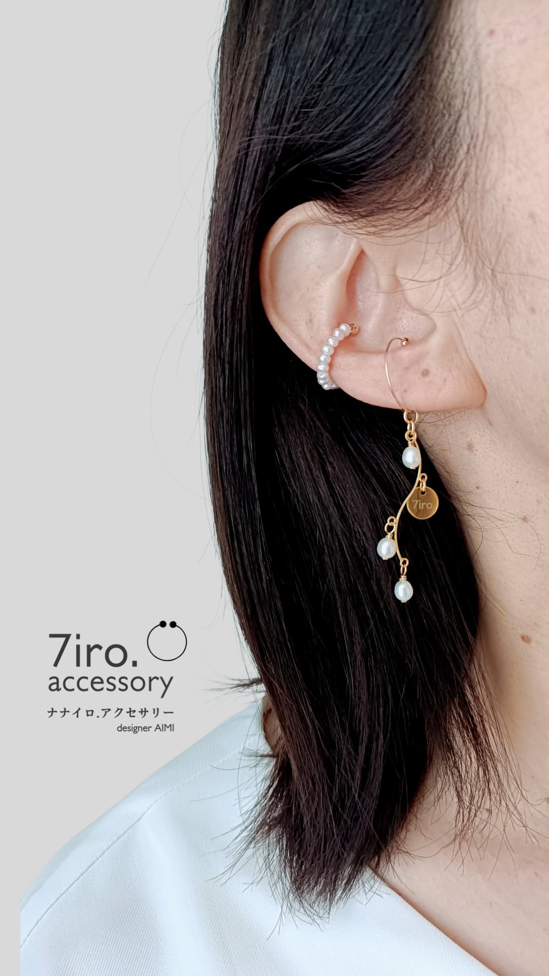 イヤーカフの様に、耳のくぼみに引っ掛けるタイプの金具を使用しております。