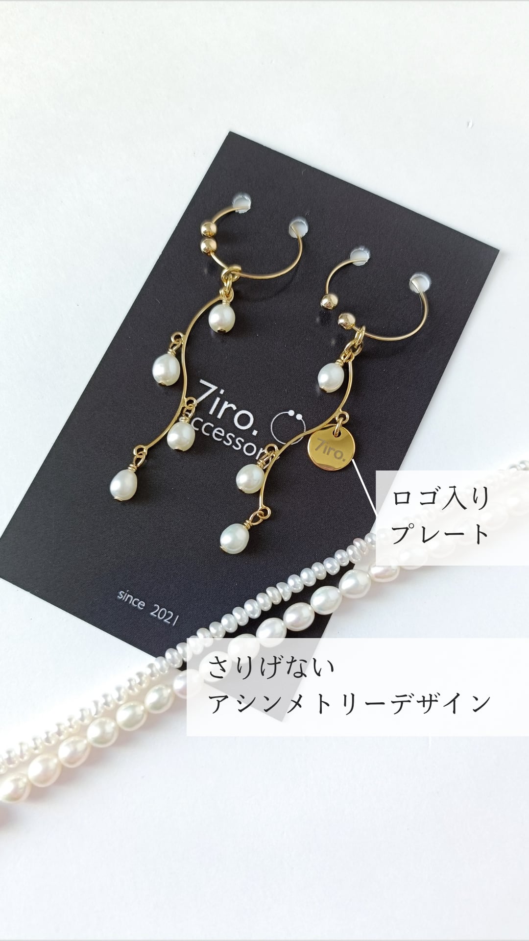 056│凛と揺れる◇アシンメトリーのパールイヤリング