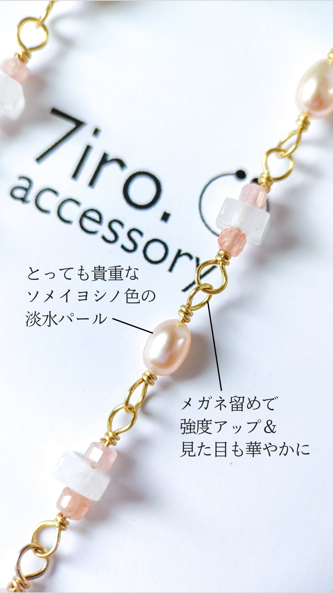 ひと粒ずつ丁寧にメガネ留めでつなぎ