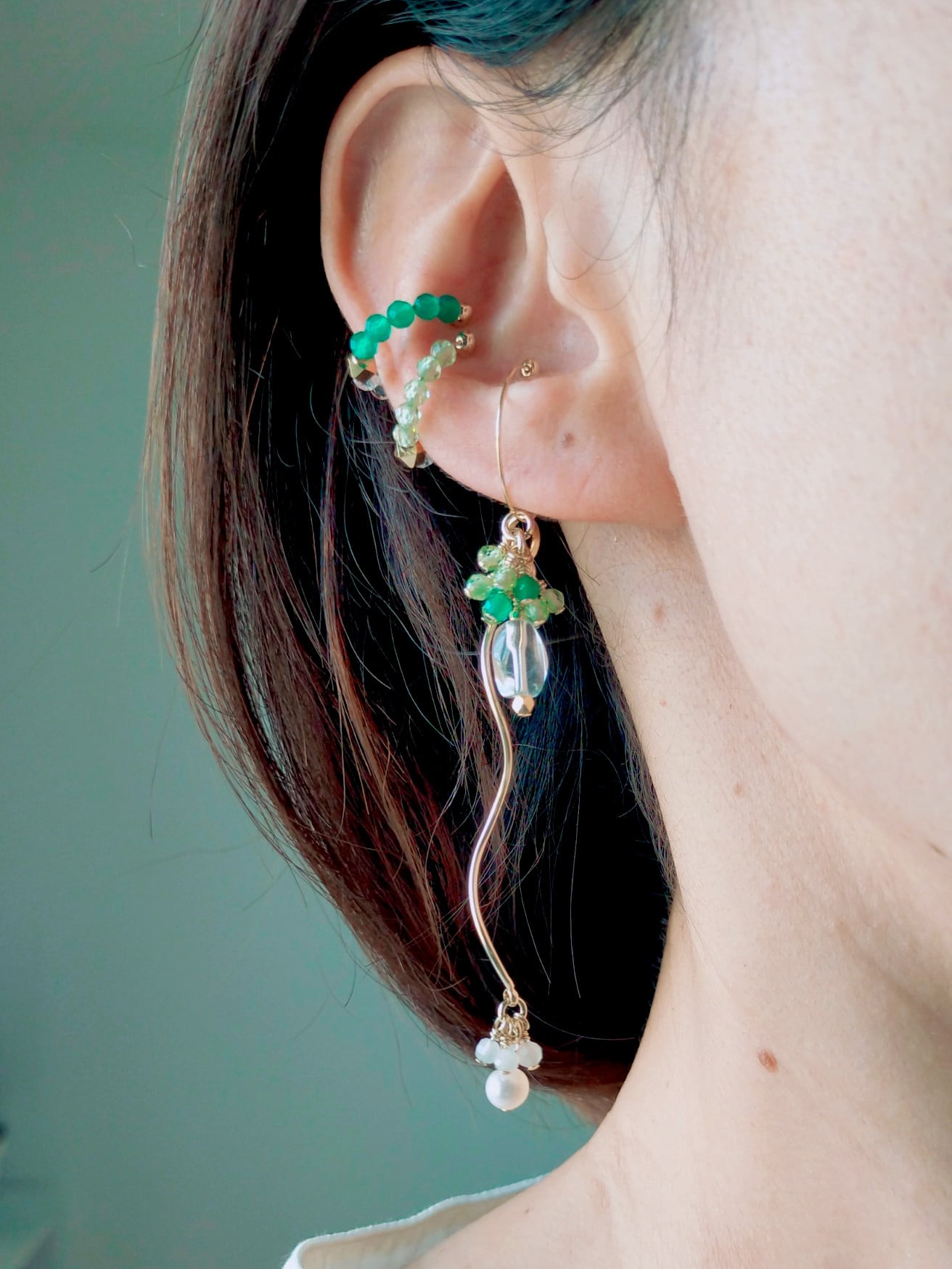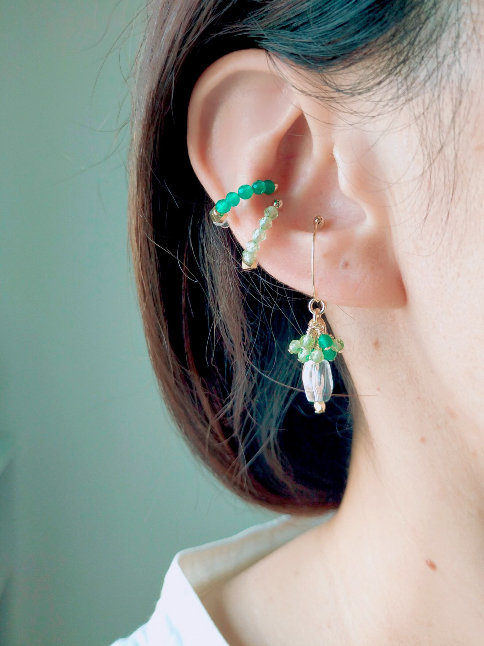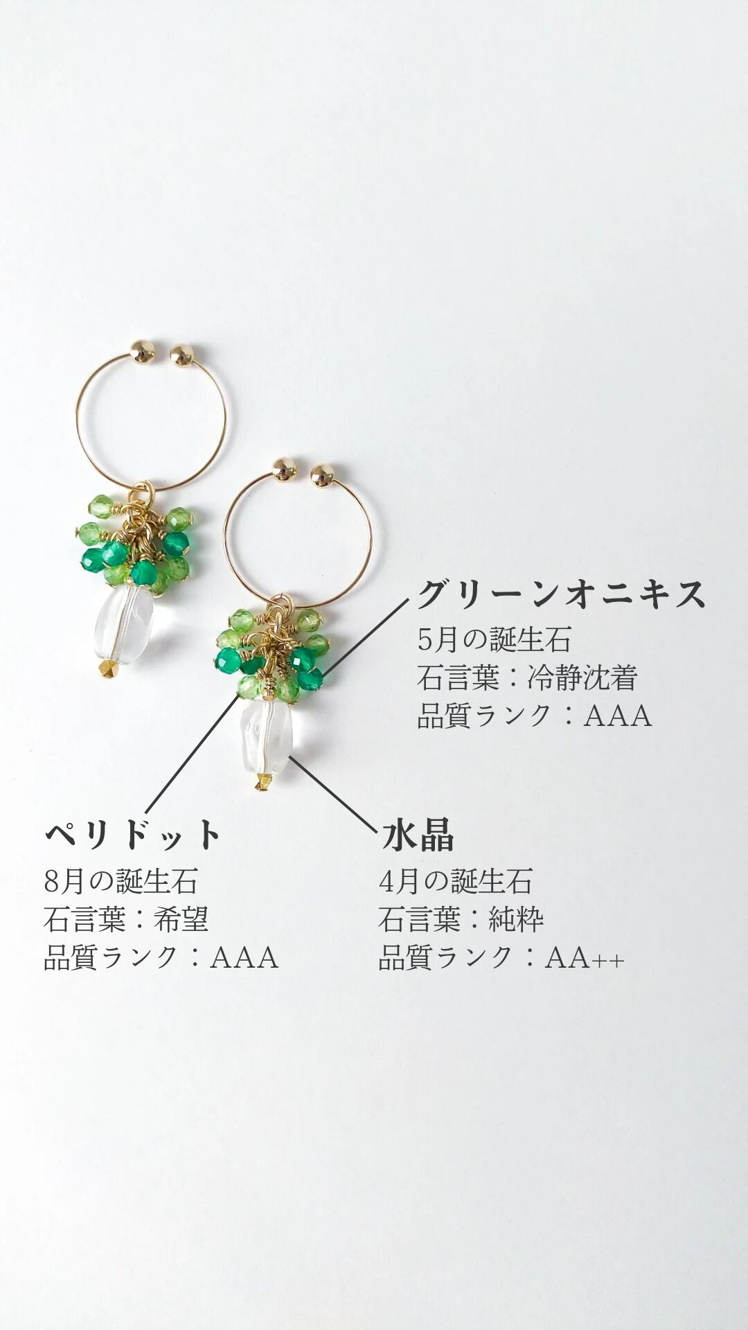 上品に、かつ、カジュアルにも着けて頂けるように、グリーンオニキスを使用する数や配置の順番など、何度も試作を繰り返して完成したアイテムです♡