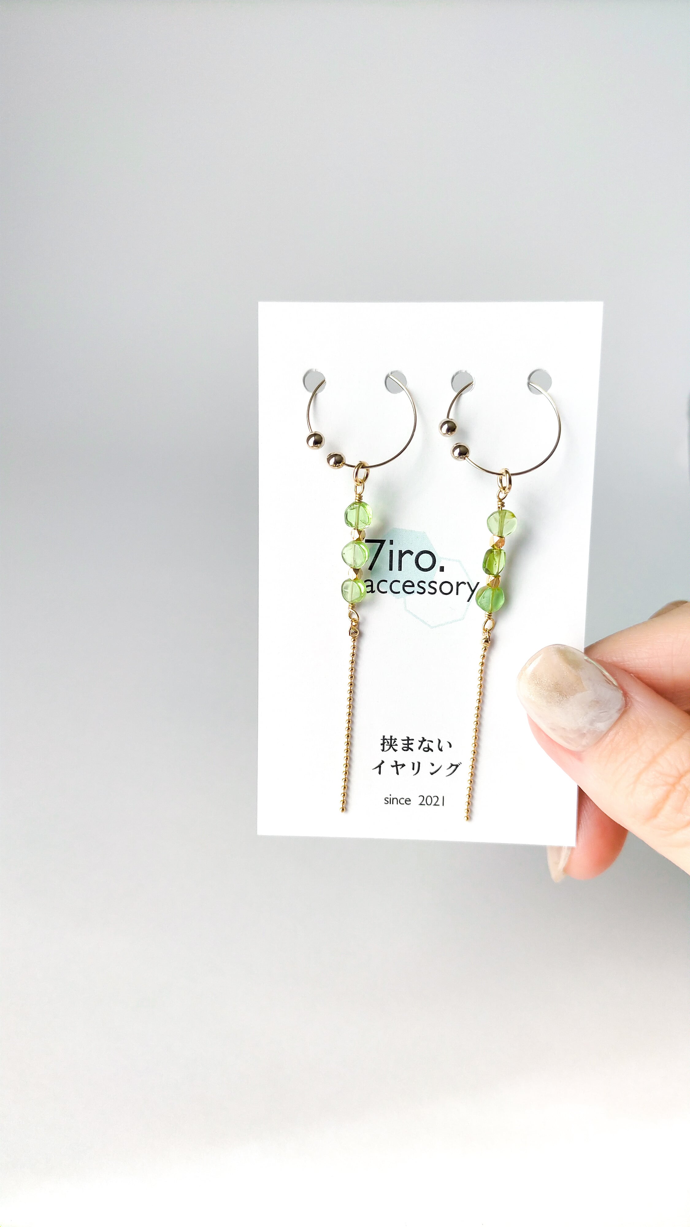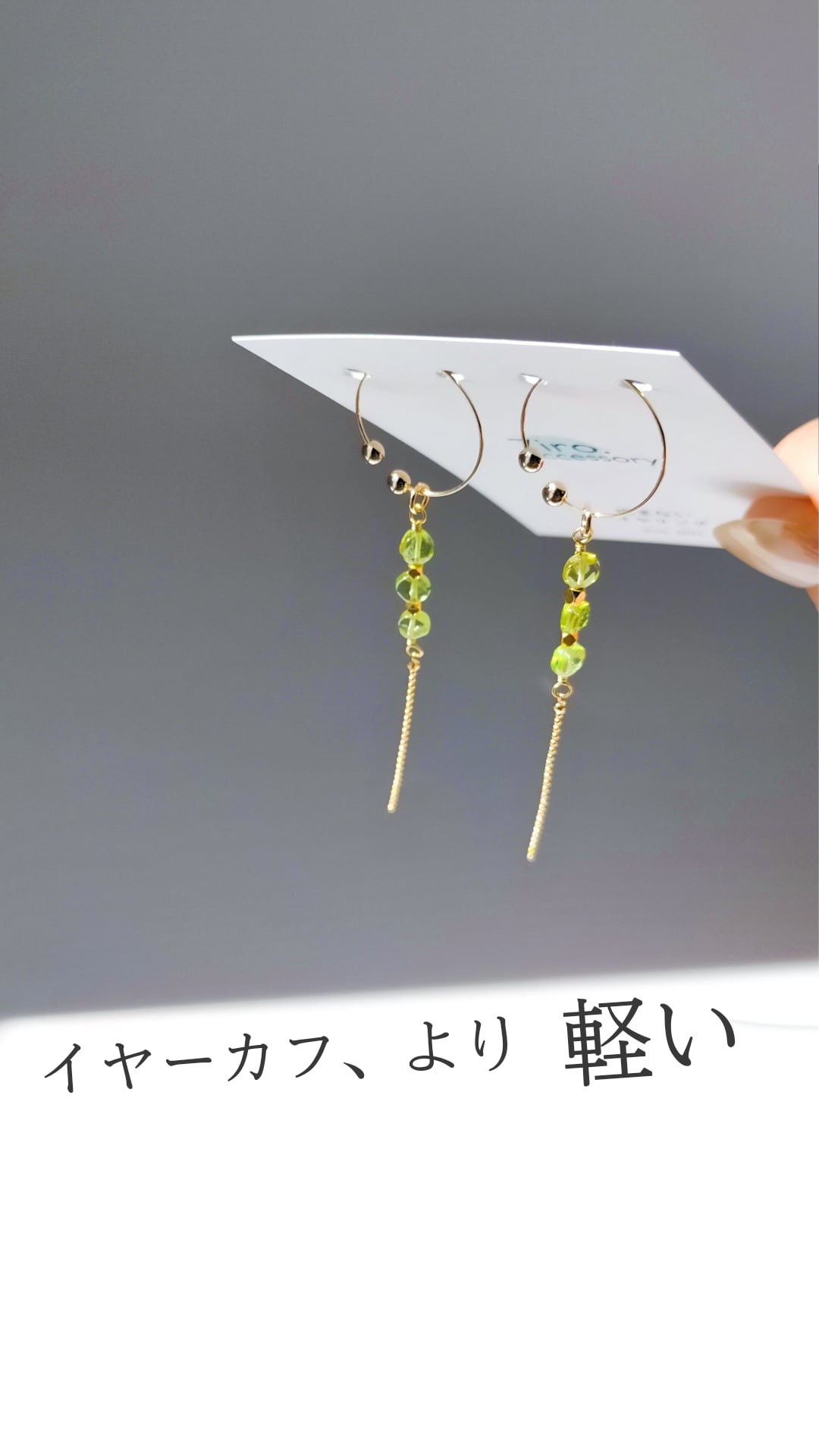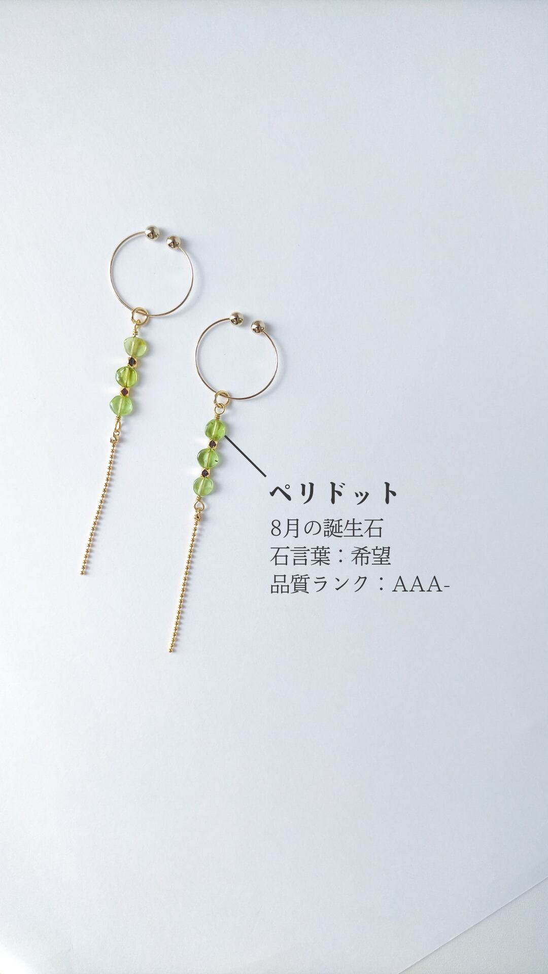 使用している、ライムカラーのペリドットは、よく見ると、小さな可愛いコイン型♡