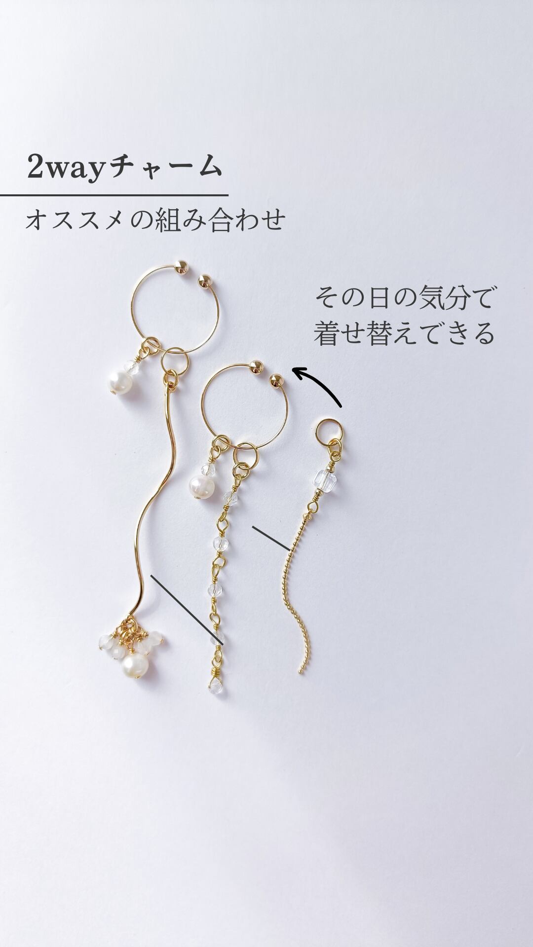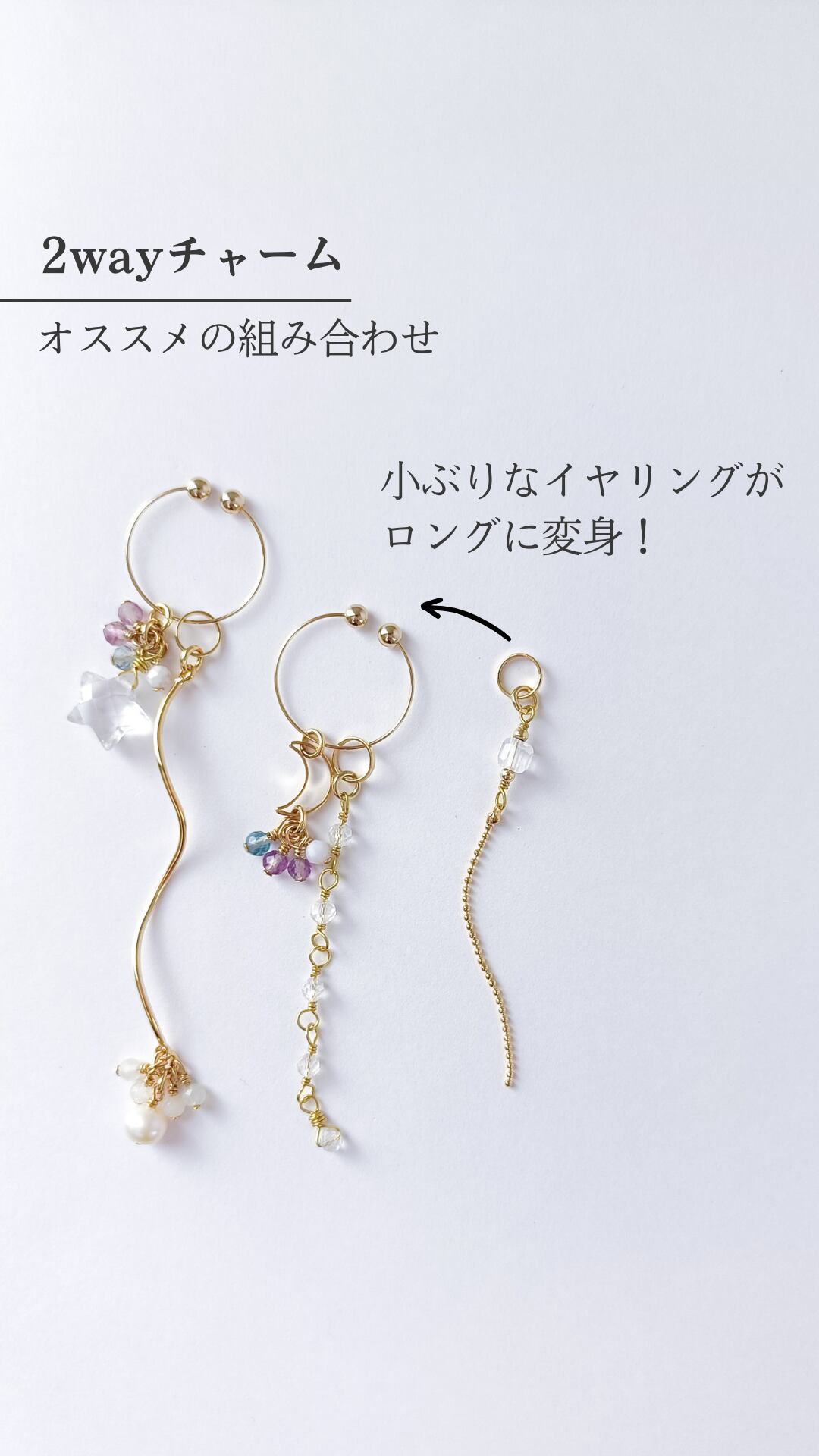 こちらの2wayチャーム、当店で販売している全てのイヤリング/イヤーカフに、着せ替えOK!