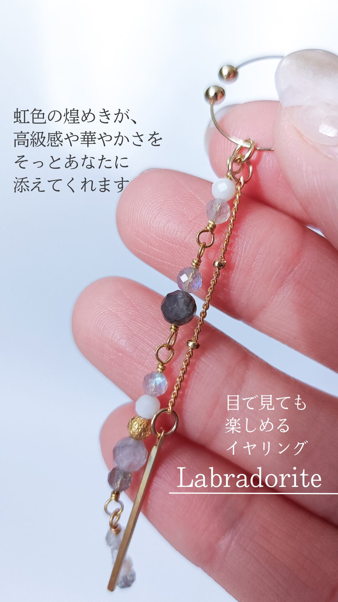 様々な種類の天然石を使ったアイテムなんですが、特に魅力的なのは、「ラブラドライト」という石