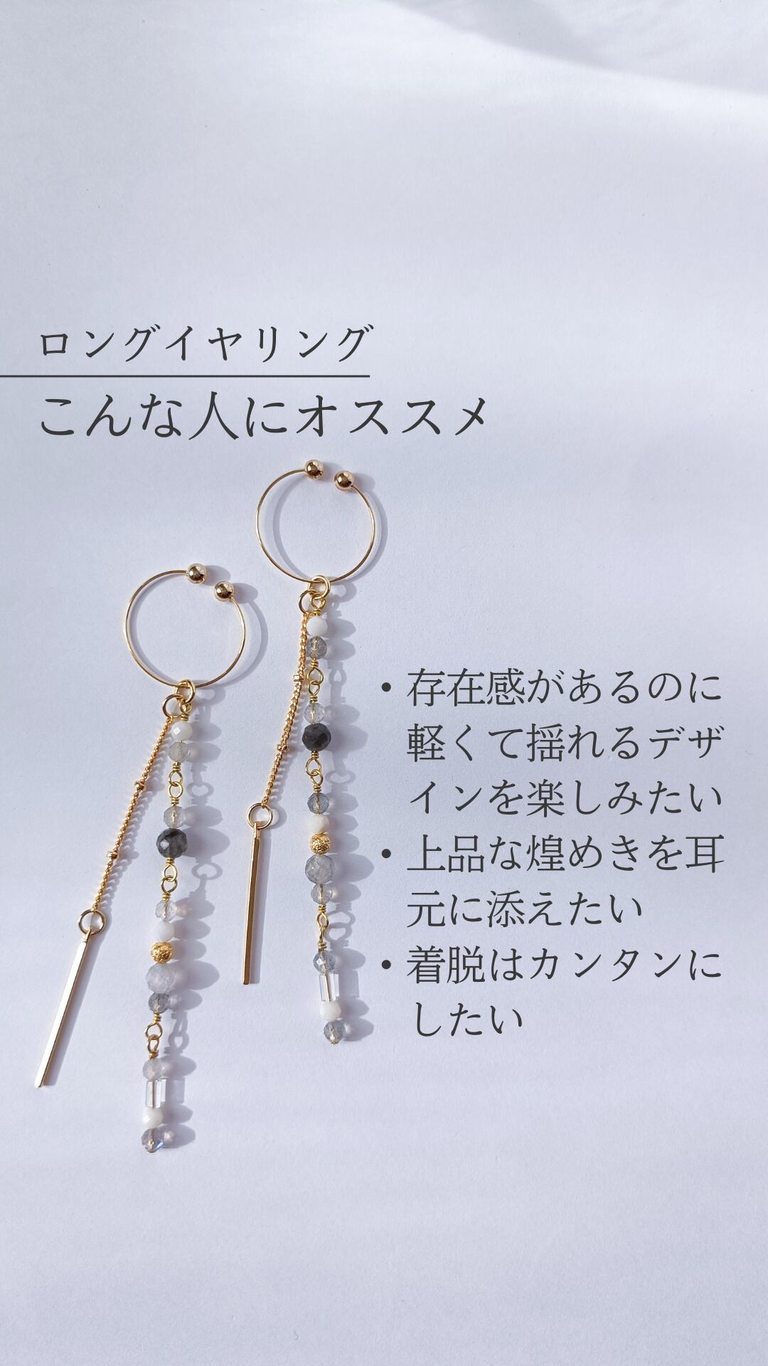 グレーの美しさを最大限に引き出した、見て美しい、着けて美しいイヤリングです♡