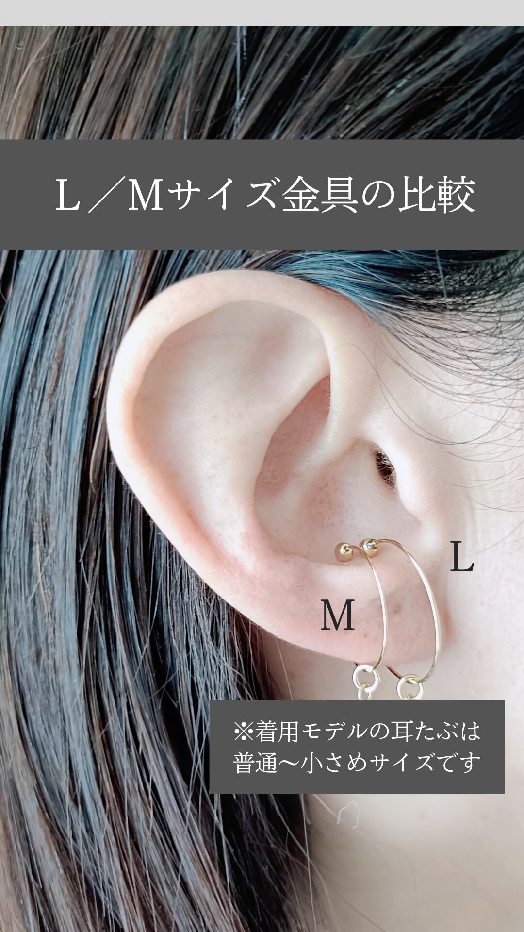 耳たぶが大きめの方や、ゆったりとした着け心地がお好みの方は、Lサイズがオススメです。