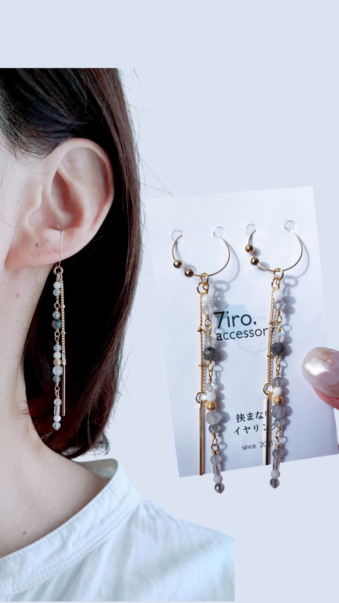 7センチ、と長めのデザインですが、1.7グラムと、超軽♪なのも魅力ポイント♡着けてる感がありません